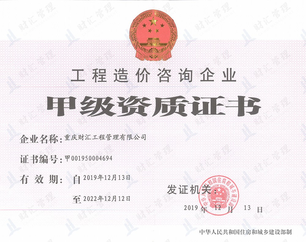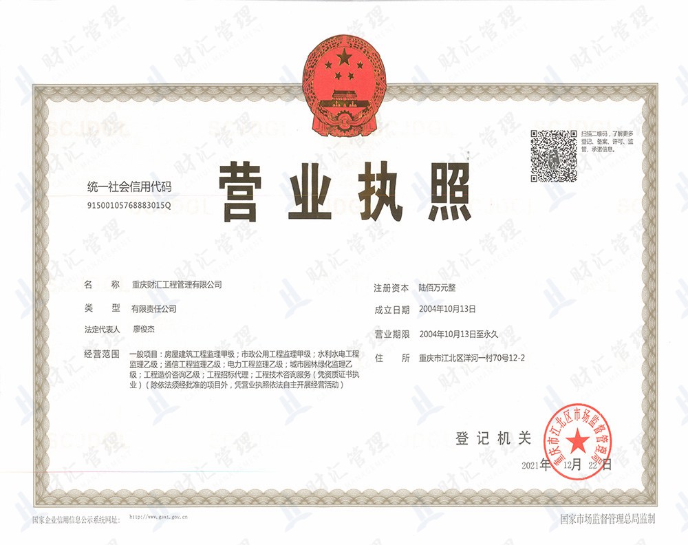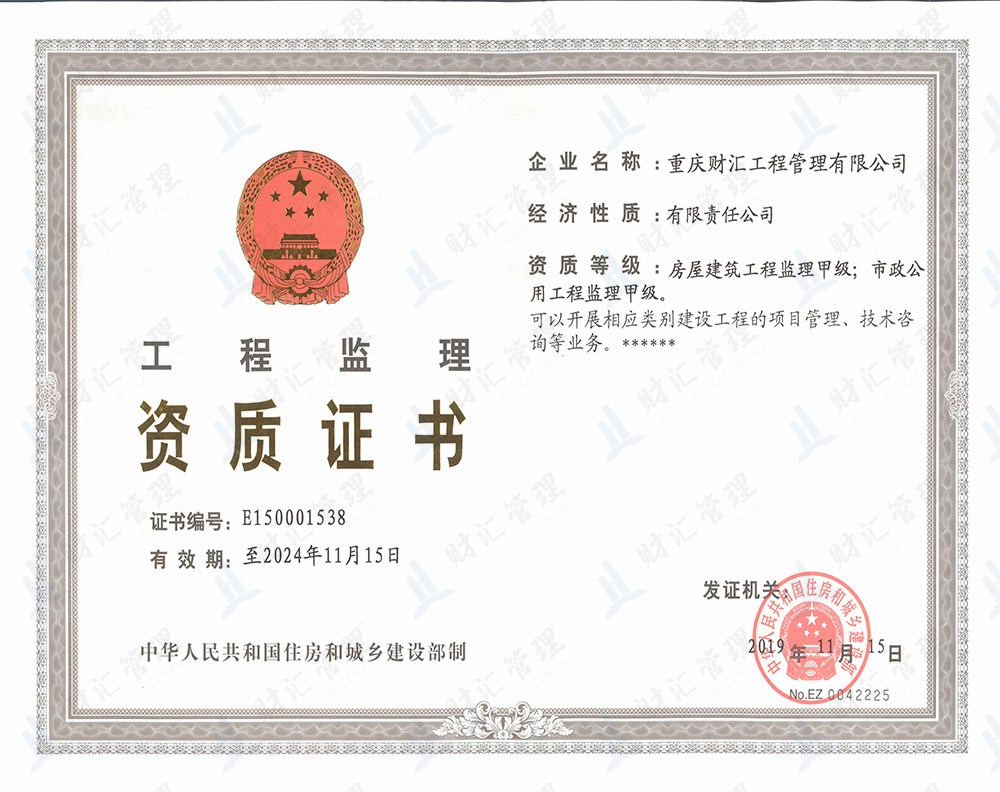 重慶財匯工程管理有限公司于2004年成立,公司擁有房屋建筑工程及市政公用工程監理甲級資質,城市園林綠化工程、水利水電工程、電力工程及通信工程監理乙級資質,工程造價咨詢甲級資質;同時開展工程技術咨詢、項目代建、招標代理、設計管理及全過程工程咨詢服務。公司專業技術實力雄厚,擁有一批長期從事工程建設監理、工程技術咨詢、...